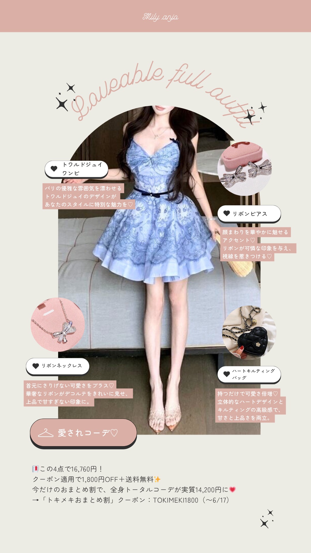 この機会にMily Anjoのクーポンを使って、あなただけの“大人可愛い”春夏スタイルをゲットしましょう♡