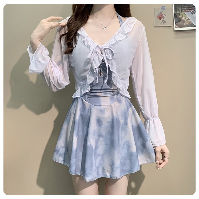 このミスティブルーフリルスイムワンピは、