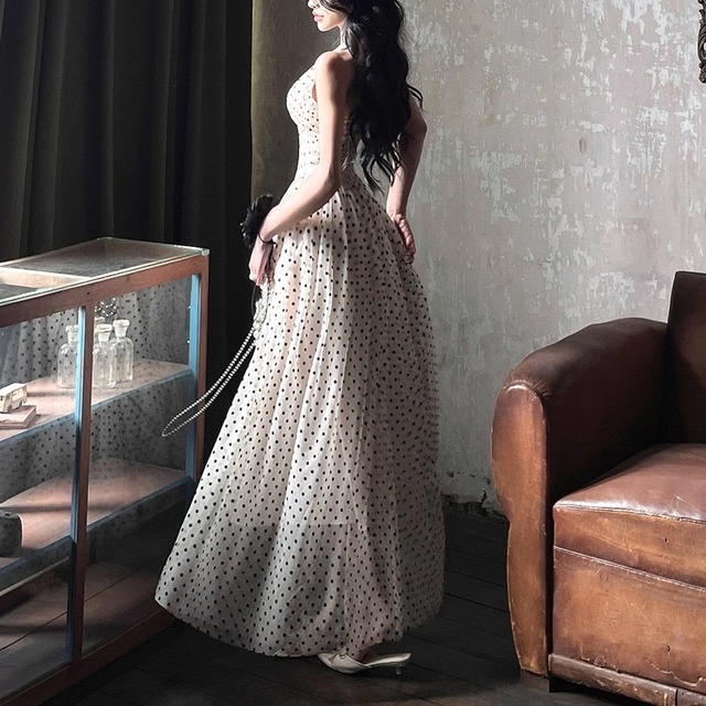 【12月下旬入荷】ドットホルターネックフレアワンピース