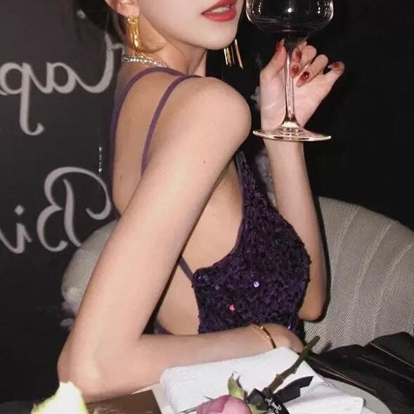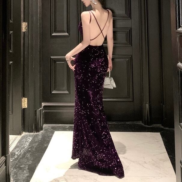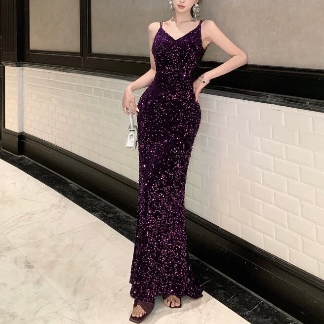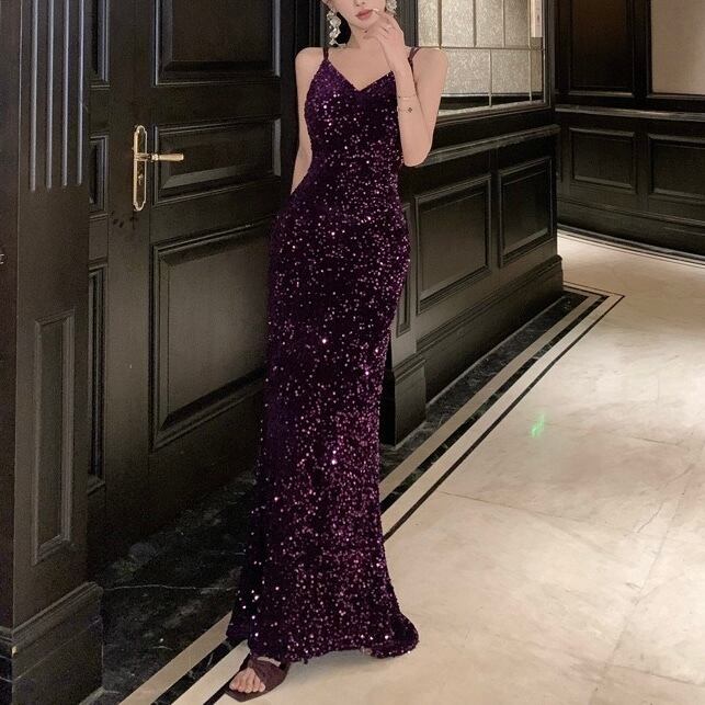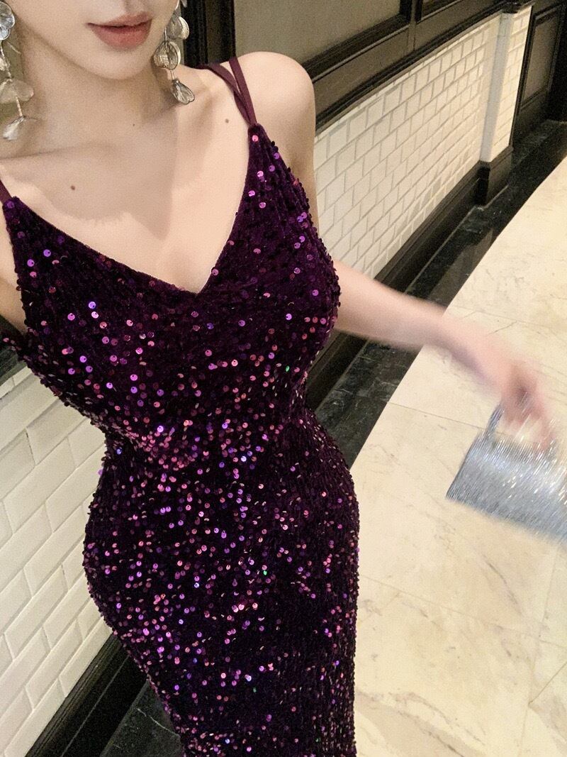 バイオレットのスパンコールが絶妙に散りばめられ、