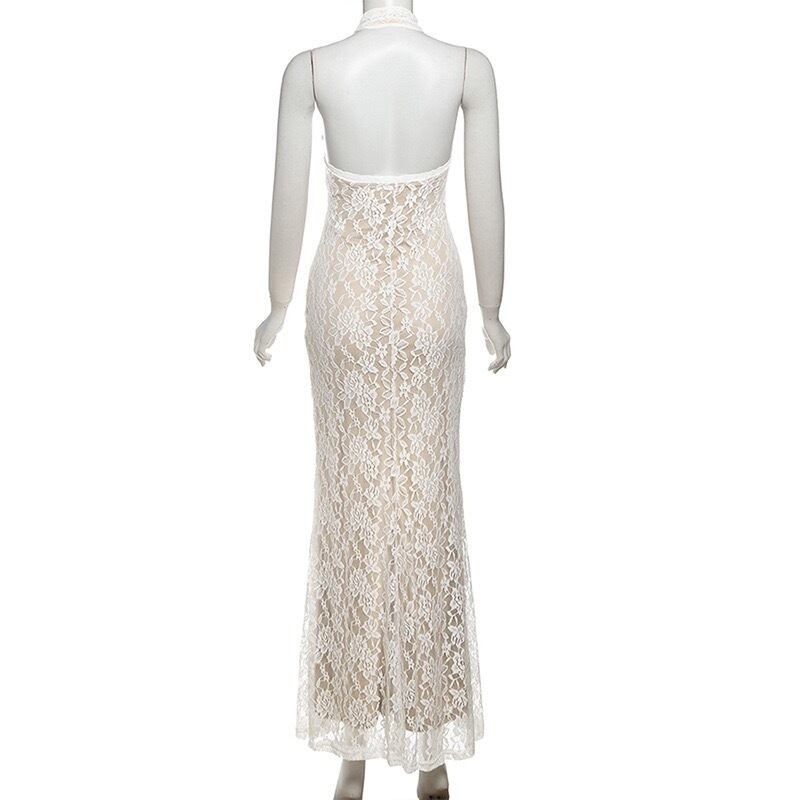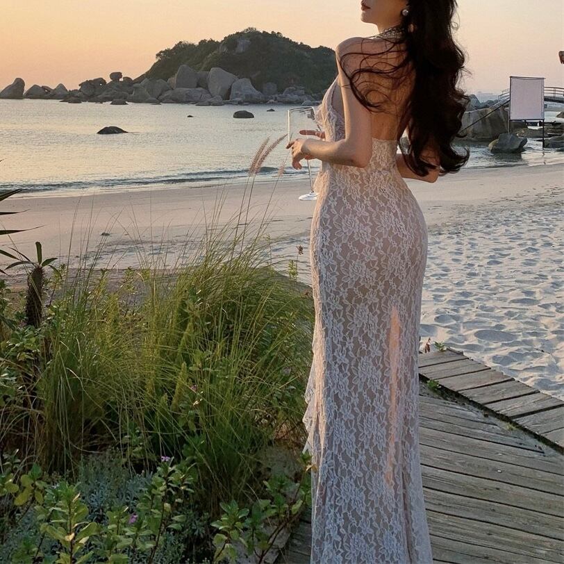 フルレースホルタースリットワンピース。