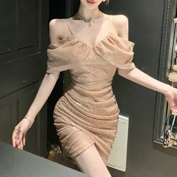 スパンコールミニワンピース。