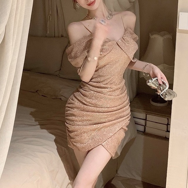 【12月下旬入荷】シャンパンドレープミニワンピース