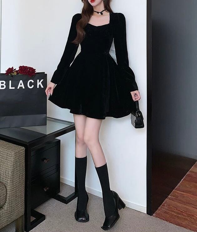 大胆なスクエアネックがデコルテを美しく見せ、