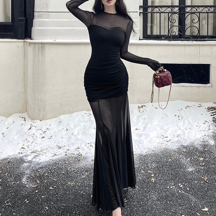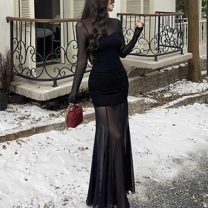【即納】【一部受注】シースルーブラックマーメイドワンピース