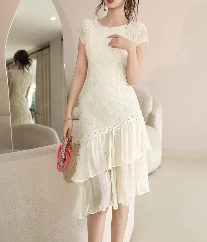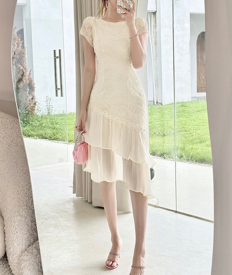 優雅に揺れるティアードデザインとアシンメトリーシルエットが、