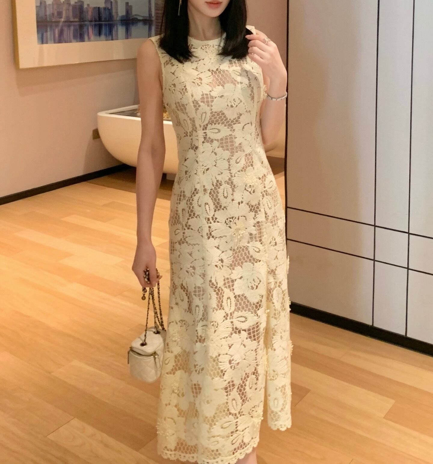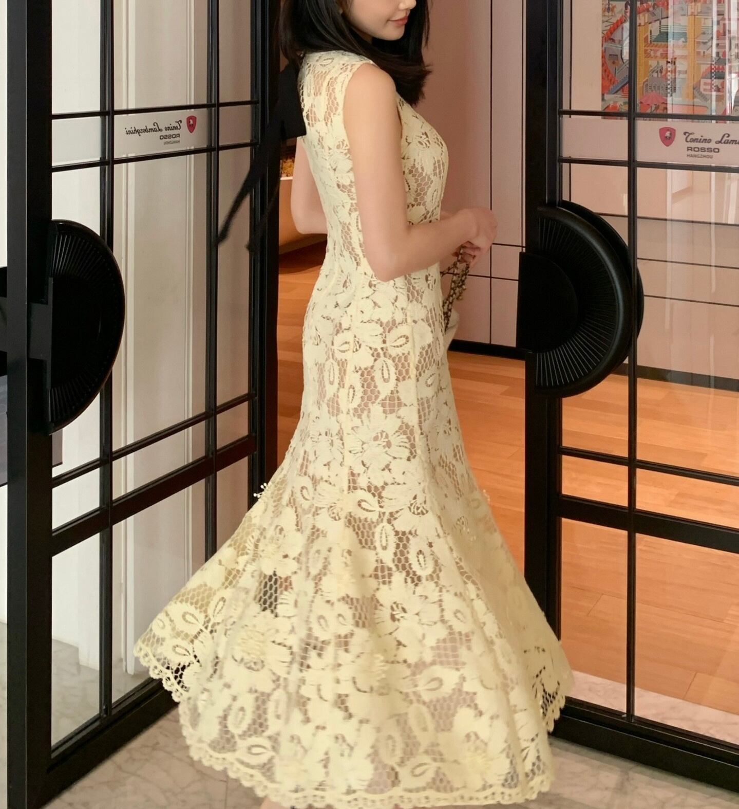 【受注】クリームイエローフルレースワンピース