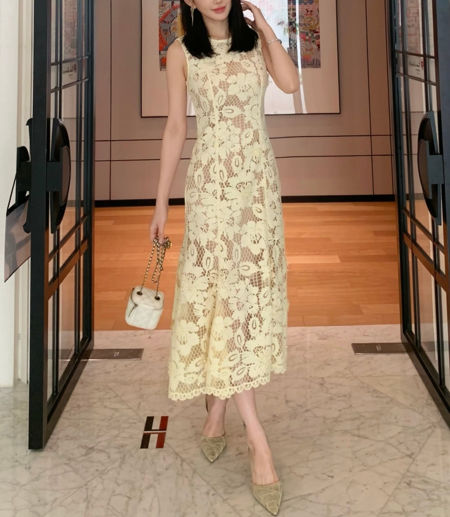柔らかなクリームイエローが女性らしい華やかさを引き立てる、