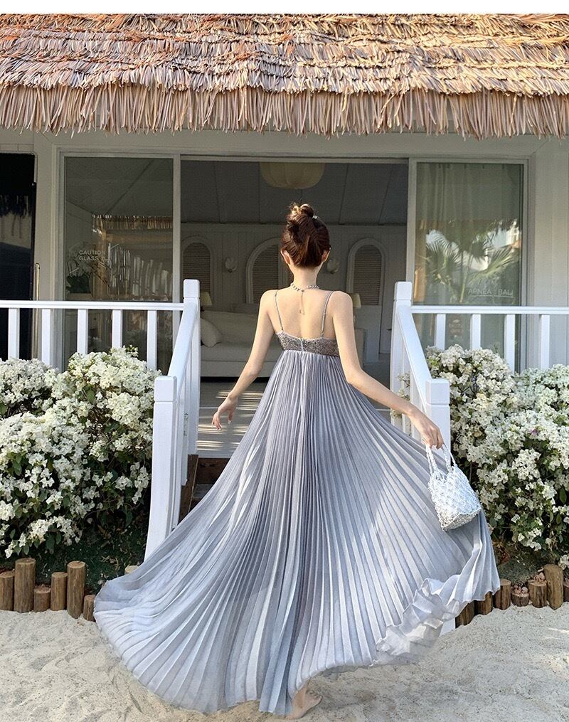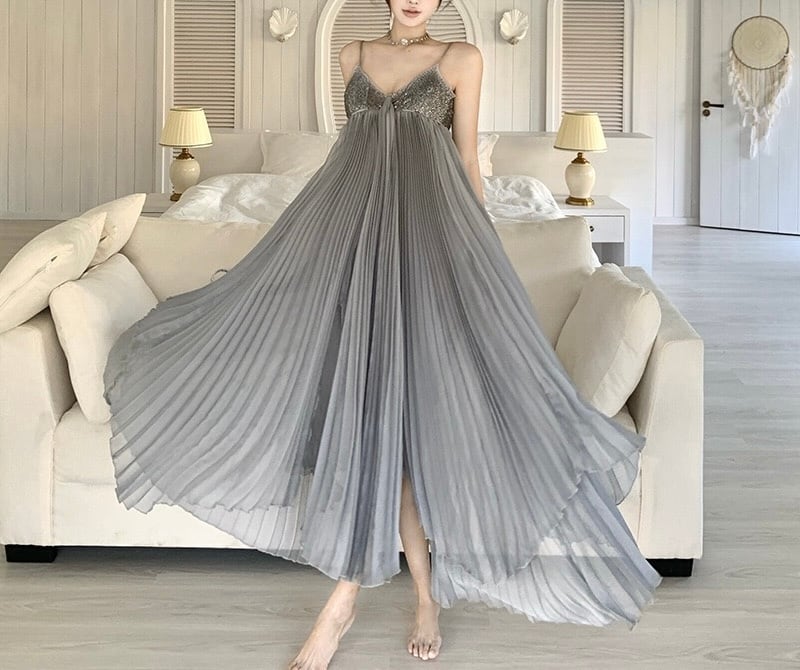 【軽やかに揺れる、エアリープリーツロングワンピース】