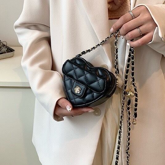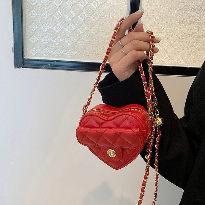 愛らしいキュートなハート型のミニバッグ。
