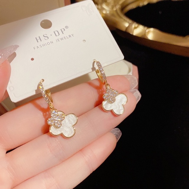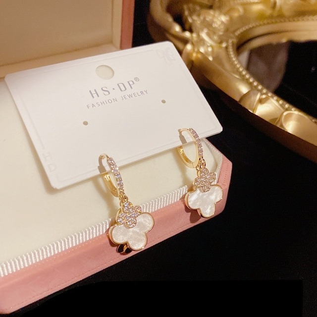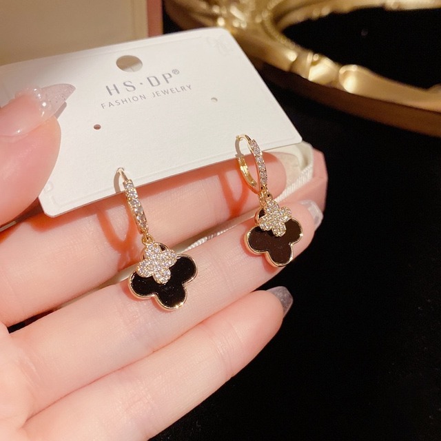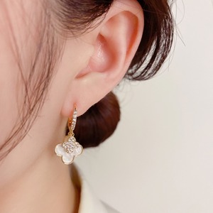 【即納】クローバーモチーフゴールドピアス《ホワイト/ブラック》
