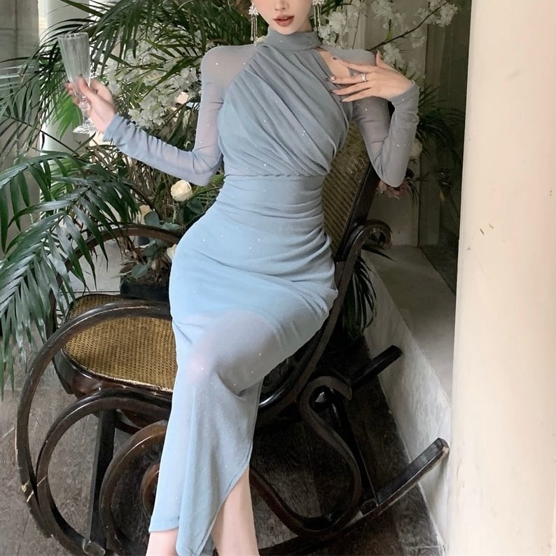 《残り1点》【即納】シアースリットロングワンピース
