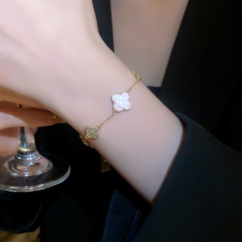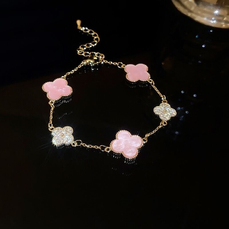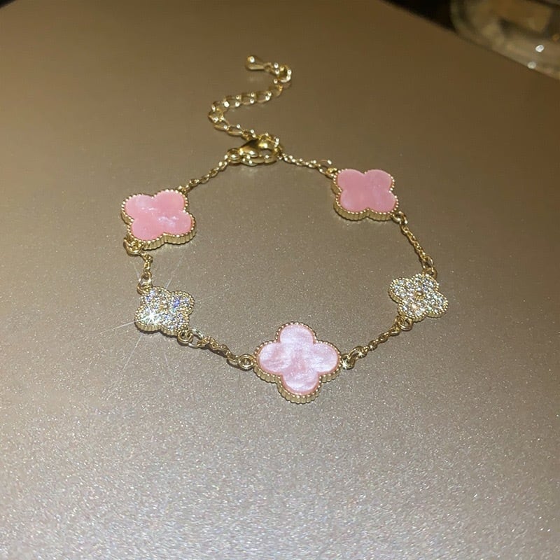 【12月中旬入荷】ピンクシェルクローバーブレスレット