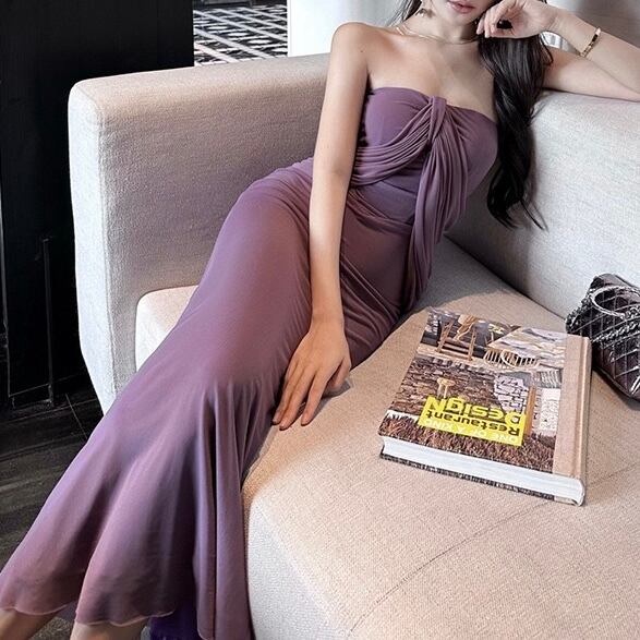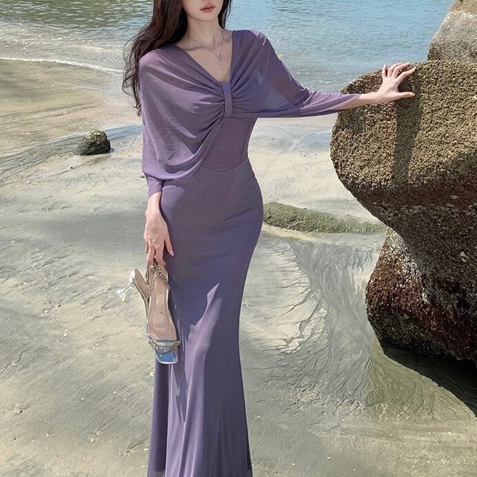 【エレガントな魅力を纏うシアーロングワンピース】