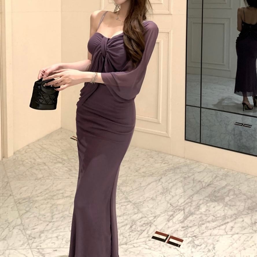 【即納】2wayショルダーシアーロングワンピース