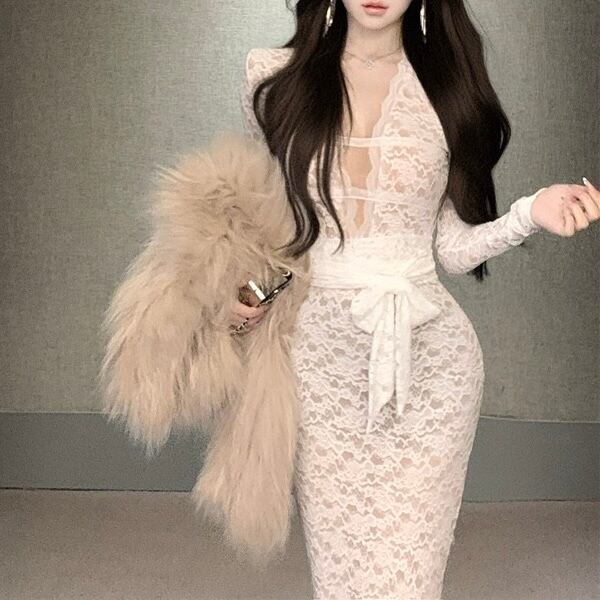【即納】フルレースフロントカットワンピース《ホワイト・ブラック・パープル》