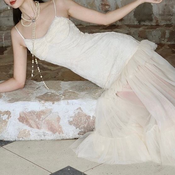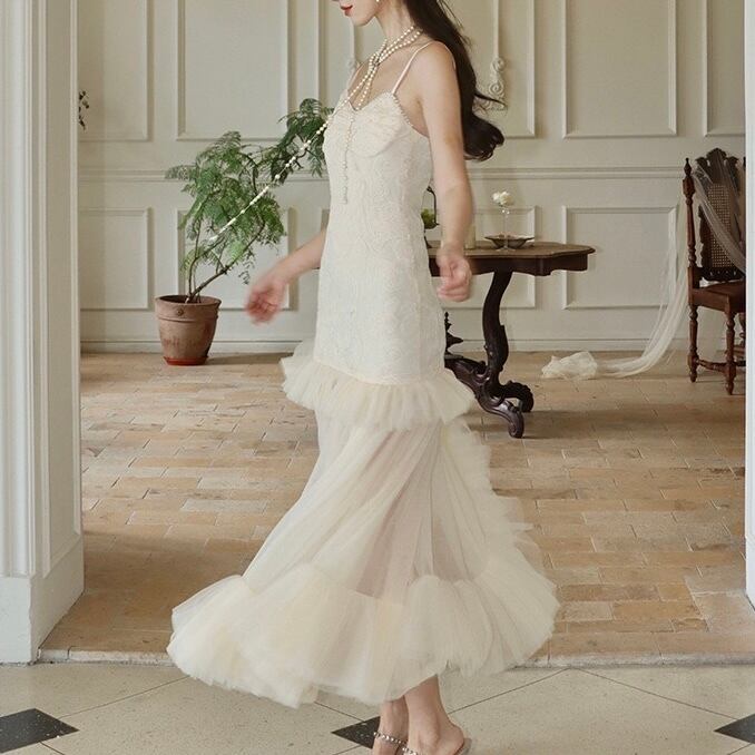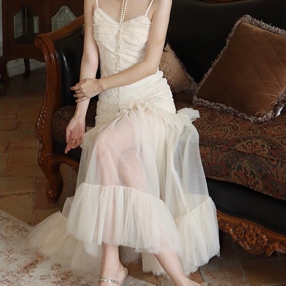 華やかなホワイトのキャミワンピース。